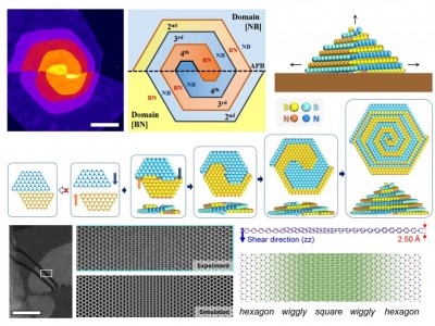 Double-Spiral Hexagonal Boron Nitride and Shear Strained Coalescence Boundary